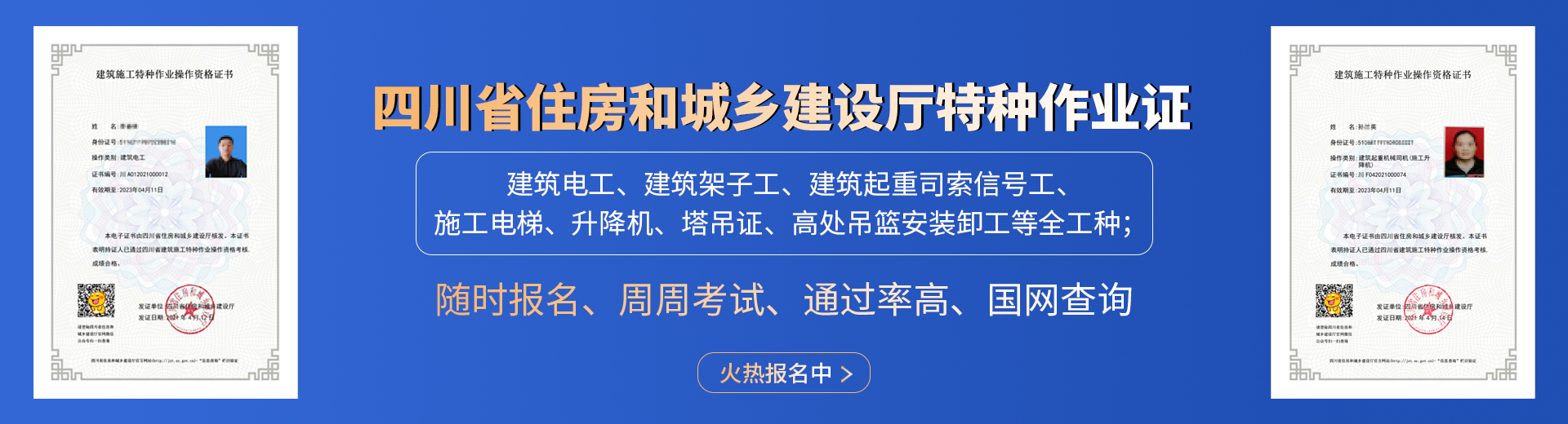 電工證,焊工證,登高架設(shè)證,高處安裝維護拆除證,電力電纜證,繼電保護證,電氣實驗證,防爆電器作業(yè)證,制冷工證,主要負(fù)責(zé)人證,安全管理人員證
